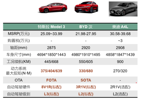 而Model3、model Y和比亚迪汉等车型,相比同等燃油车具有更高的性价比,这些纯电动车型在动力、智能驾驶配置的性能和装配率上要显著高于同价位的燃油车。