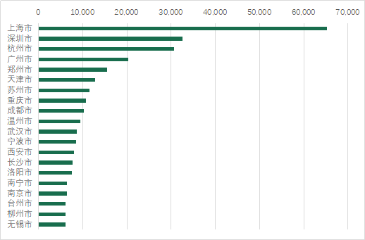 具体到城市来看,2021年1~5月,新能源汽车同比增幅最大的前20个城市主要是1~3线城市。其中,上海由于限行新政的出台,带来了最大的新能源汽车同比销售增量,即今年1~5月新能源汽车的累积量同比增加了65000多辆。