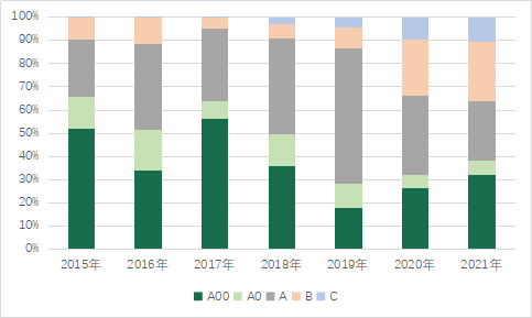 2015年-2017年,为了以最低成本获取补贴,车企推出了大量的低端A00电动车型。同时有部分面向出租等B端市场的A级车型;